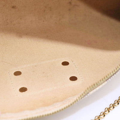 Overall: Pre-owned condition with signs of use. Outside: Slight wrinkles, Slight abrasion, Slight scratches, Some faded, Some soiled. Inside: Soiled, Undefined stains area. Outside pockets: - Inside pockets: - Shoulder strap: Wrinkles, Some faded, Few scratches, Slight soiled. Chain strap: Few abrasion, Some scratches, Few faded. Corners: Faded, Few scratches, Abrasion. The corners of the opening have slight cracking. Snaps, Zippers, and Hardware: Some abrasion, Scratches, Few soiled. Leather tag is faded, with few abrasions and soiled. The leather loop that wraps around the D-ring is faded, dirty, and shows some wear. The zipper seams are very worn and have some green discoloration.