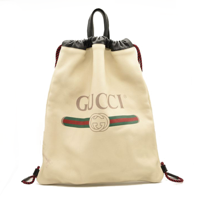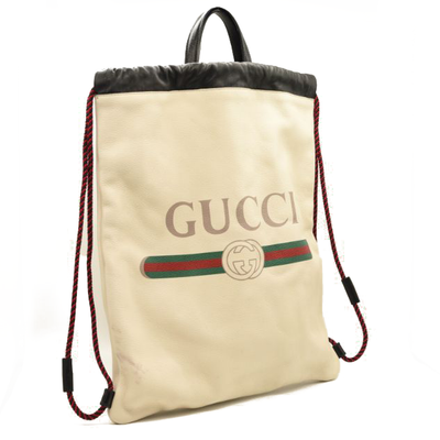 Gucci Calfskin Logo Drawstring Backpack Mystic White