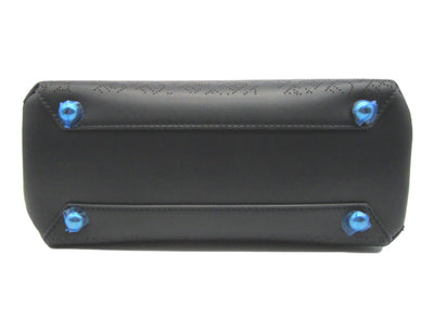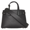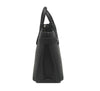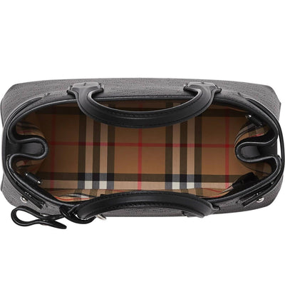 Side buckle fastenings add equestrian-inspired style to a compact tote detailed with perforated logo lettering. Crafted from grainy leather, this bag features rolled handles and an optional strap for crossbody or over-the-shoulder wear.