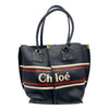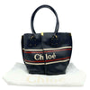 Chloé Vick Logo Embossed Full Blue Leather Tote