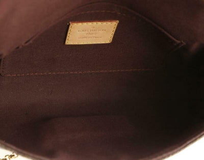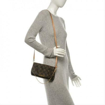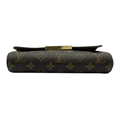 We guarantee this is an authentic LOUIS VUITTON Monogram Favorite PM or 100% of your money back. This chic pochette is crafted of Louis Vuitton monogram on toile canvas. The bag features a detachable polished gold chain hand strap and a long vachetta shoulder strap. The facing flap has a brass name logo tag with magnetic closure. This versatile bag opens to a plum fabric interior with space enough for just the essentials. Chic as a clutch, cross body or shoulder bag, this bag is as stylish as it is versatile, from Louis Vuitton!