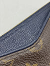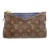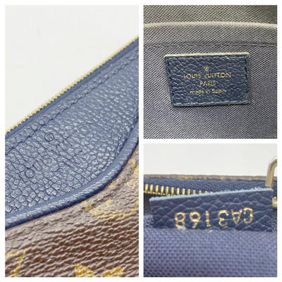 We guarantee this is an authentic LOUIS VUITTON Monogram Pallas Clutch Bleu Marine or 100% of your money back. This chic shoulder bag is crafted of Louis Vuitton monogram on toile canvas with a trim of dark blue leather at top. This versatile bag features a polished gold chain link strap and a vachetta leather detachable strap. The top zipper opens to a dark blue fabric interior with a patch pocket, and enough room for day or evening essentials with the luxury and style of Louis Vuitton!
