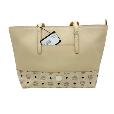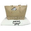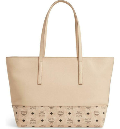 MCM's signature Visetos monogram print brands the reinforced base of a spacious tote made from richly grained leather. Slim top handles are long enough to slip over the shoulder but short enough to carry in hand.