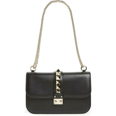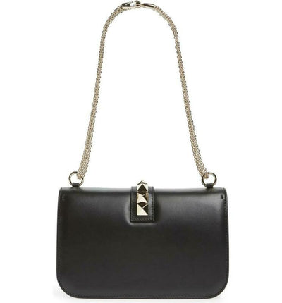 Signature pyramid studs call attention to the modern profile of a sized-down shoulder bag that balances rock-star glamour with the timeless beauty of rich, finely grained leather.
