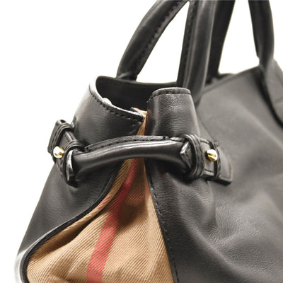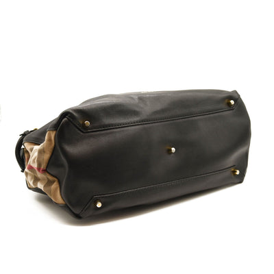 Pre-Owned BURBERRY Calfskin House Check Medium Banner Tote Black