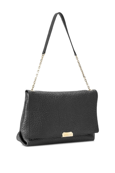 We guarantee this is an authentic BURBERRY Signature Grain Madison Chain Clutch Black or 100% of your money back. This sophisticated cross body bag is finely crafted of heavily textured black leather. The bag features a leather and chain link crossbody strap with gold hardware, and a facing flap. This opens with a brass press lock to a partitioned black leather and fabric interior with a zipper compartment, pockets, and card slots. This is an excellent bag for everyday essentials with the iconic style only from Burberry!