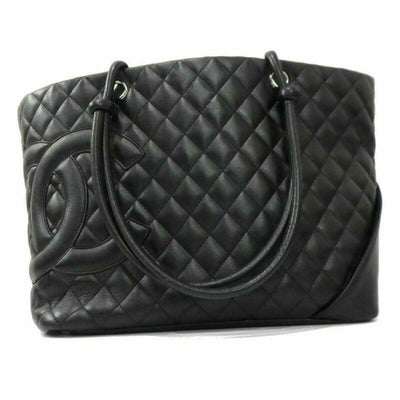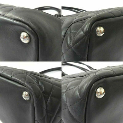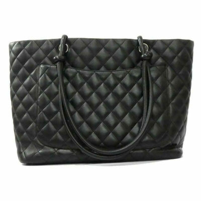 We guarantee this is an authentic CHANEL Calfskin Quilted Large Cambon Tote Black or 100% of your money back. This is a large, distinctively structured tote that is beautifully crafted of luxurious and smooth black diamond quilted calfskin leather. The bag features a large black leather Chanel CC logo patch, rolled black leather strap handles with knotted ends and silver hardware. The top is open to a fuchsia Chanel CC logo jacquard weave fabric interior with zippered pockets. This is an excellent tote that is ideal for day and all of your everyday essentials that call for the timeless quality and style you can rely on from Chanel.