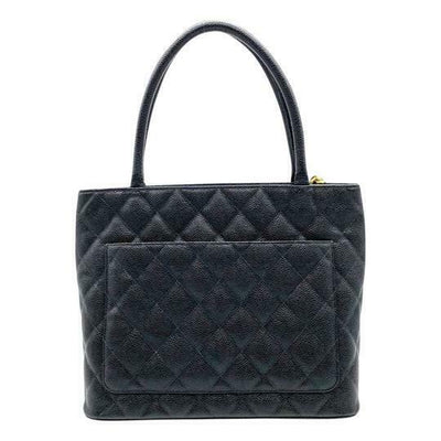 We guarantee this is an authentic CHANEL Caviar Quilted Medallion Tote Black or 100% of your money back. This chic tote is crafted of diamond quilted caviar leather in black. The bag features a rear patch pocket, large Chanel CC leather patch, rolled leather top handles and gold hardware. The top zipper opens to a leather interior with zipper and patch pockets. This is a stylish tote, with the timeless style of Chanel!
