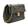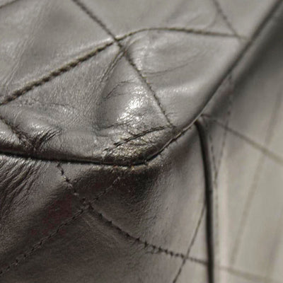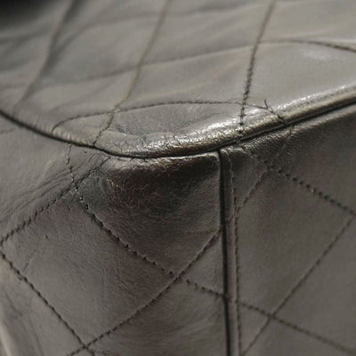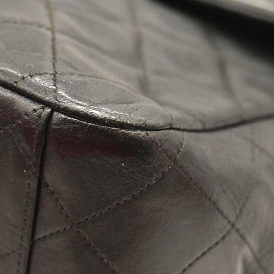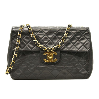This is an authentic CHANEL Lambskin Quilted XL Jumbo Single Flap in Black. This classic single flap bag is crafted of black diamond quilted lambskin leather and features polished gold plated chain shoulder straps, threaded with black leather and a front flap. Gold plated CC turn lock opens to a burgundy leather interior with zipper and patch pockets.