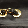 [Outside] overall : lightly soiled / (dullness on hardware) / obviously losing shape / metal coat peeling bottom : Slightly rubbed corners strap : Slightly rubbed corners / slight fabric peeling main opening : Slightly rubbed corners / stiff open and close / (Loose rotation of turn lock)