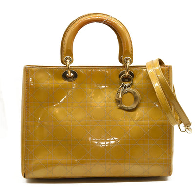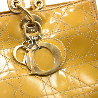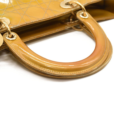 CHRISTIAN DIOR Patent Cannage Large Lady Dior Yellow