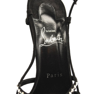 Christian Louboutin's Vegastrassima sandals feature dainty vamp straps adorned with sparkling crystals. The France-based label elevates this suede pair with a skyscraper platformed heel showcasing the Maison's signature red sole. A towering demi-block heel perfectly balances with a hearty platform on this unabashedly glamorous sandal illuminated with glittering crystals.