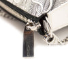 This is an authentic CHRISTIAN LOUBOUTIN Loubila Hybrid Monogram Pouch Crossbody Bag In White/black. This chic chain wallet is crafted of white/black coated canvas. This bag features a silver chain strap, an optional white nylon shoulder strap with a coin purse, and silver hardware. The top zipper opens to a red fabric interior.