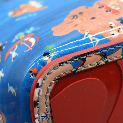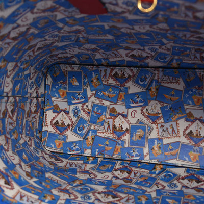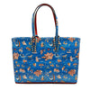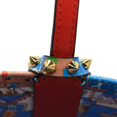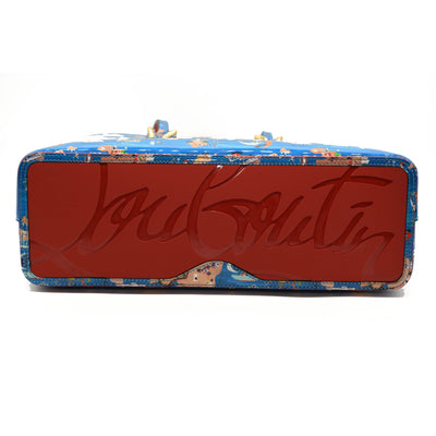 This is an authentic CHRISTIAN LOUBOUTIN Patent Calfskin Small Greekaba Cabata Tote in Blue. This chic tote is crafted of patent calfskin leather in blue with a multicolor design. The bag features leather strap handles with silver stud accents and Louboutin signature logo base. The top is open to a spacious multicolor print leather interior.