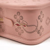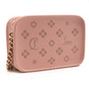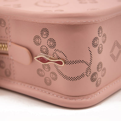 Evoking the shape of a retro radio, this leather crossbody bag features laser-cut perforations that tone down signature logo detailing.