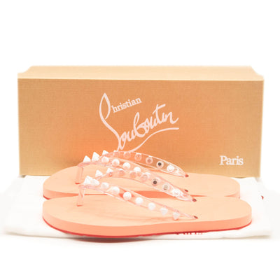 NEW $399 CHRISTIAN LOUBOUTIN Rubber Spike Loubi Donna Flip Flop 35 Transparent Orange