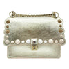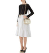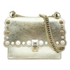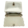Enameled studs set off the pretty scalloped flap of this mini bag, shimmering in silvery calfskin leather. A spacious, divided interior and pull-through chain strap add carrying convenience to the covetable style.