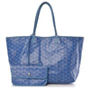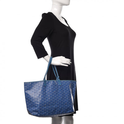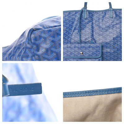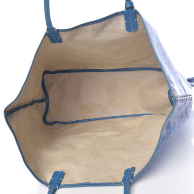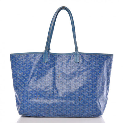 We guarantee this is an authentic GOYARD Goyardine Saint Louis PM Sky Blue or 100% of your money back. This stylish tote is crafted of coated canvas with the classic Goyard chevron monogram in blue. The bag features blue leather shoulder straps and matching trim. The top is open to a spacious natural canvas interior with a removable pouch. This is a classic tote for everyday, with the traditional quality and innovation, only from Goyard!