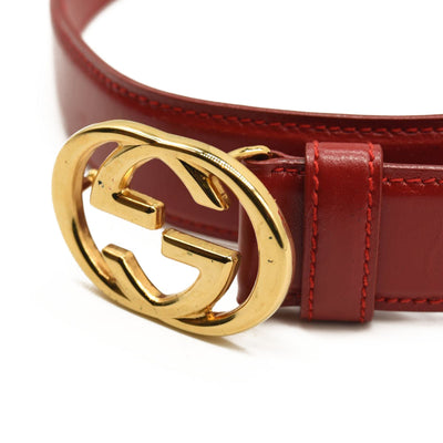 GUCCI Calfskin Interlocking G Belt 75 30 Vibrant Red