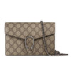 Gucci GG supreme canvas wallet-on-chain with leather trim and hand-painted edges.