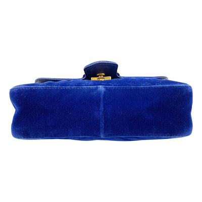 Gucci Marmont Mini Chain Cobalt Blue Velvet Shoulder Bag