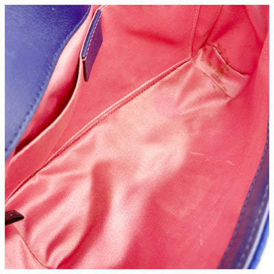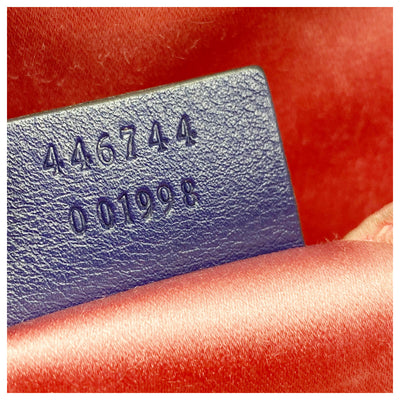 We guarantee this is an authentic GUCCI Velvet Matelasse Mini GG Marmont Shoulder Bag Cobalt Blue or 100% of your money back. This lovely bag is crafted out of chevron quilted soft velvet in dark blue. It features an aged gold chain shoulder strap with a leather shoulder pad and an aged gold interlocking GG logo closure. The front flap opens to a pink satin interior with a patch pocket. This is a perfect everyday shoulder bag, from Gucci!