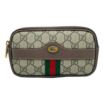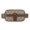 Signature Gucci web stripes and iconic double-G logos brand a compact belt bag crafted from durable canvas--perfect for travel and errand days alike.