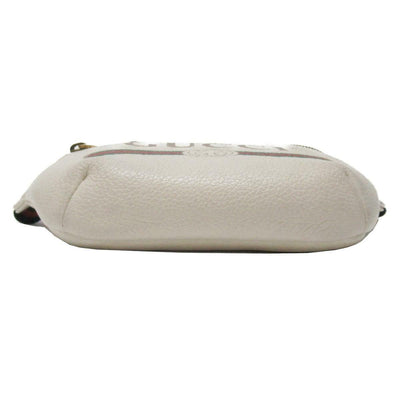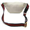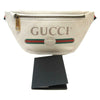 We guarantee this is an authentic GUCCI Grained Calfskin Small Gucci Print Belt Bag White or 100% of your money back. This belt bag is a white leather with a vintage Gucci logo. This bag has a nylon navy and blue web belt that can be worn as a belt bag on the hip or waist. The front zipper opens to a beige natural fiber interior. This stylish belt bag is perfect for any time of the day from Gucci!