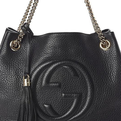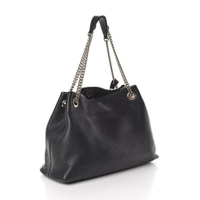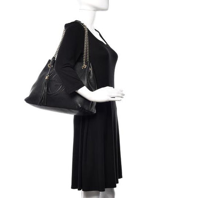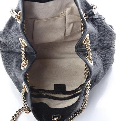 Gucci Soho Pebbled Calfskin Chain Black Leather Tote