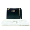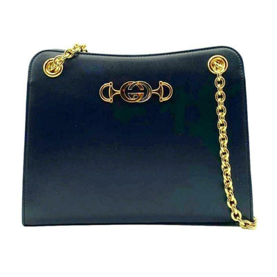 Exterior, golden and silvertone logo horsebit.