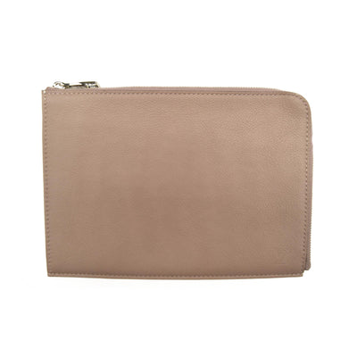 This is an authentic LOUIS VUITTON Calfskin Pochette Jour PM in Taupe. This pochette is crafted of smooth calfskin leather in beige. It features a three sided polished silver zipper that opens to a soft beige microfiber interior with a large patched pocket.
