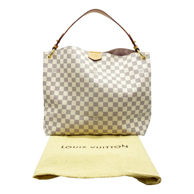 DESCRIPTION We guarantee this is an authentic LOUIS VUITTON Damier Azur Graceful MM Rose Ballerine or 100% of your money back. This stylish shoulder bag is finely crafted of Louis Vuitton signature damier azur canvas. The shoulder bag features a flat leather shoulder strap with polished brass hardware links and magnetic leather closure. This opens to a spacious light pink fabric interior with a zipper pocket. It's an excellent shoulder bag, ideal for everyday essentials, with the luxury and style of Louis Vuitton!