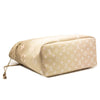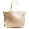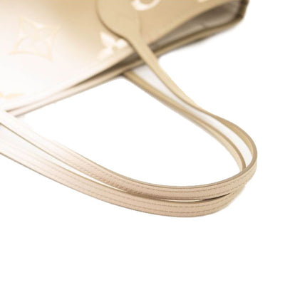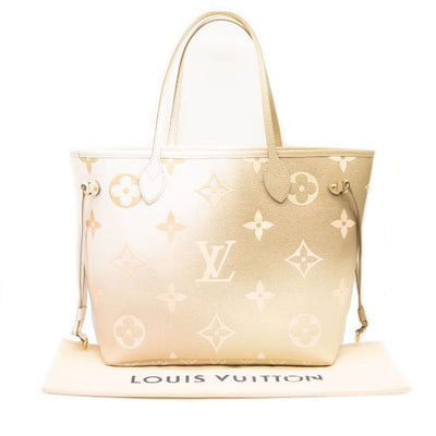 This is an authentic LOUIS VUITTON Monogram Giant Spring In The City Neverfull MM in Sunset Kaki. This pre-owned luxury tote is part of the Louis Vuitton Spring 2022 “Spring in the City” collection. This stylish tote is crafted of oversized Louis Vuitton monogram coated canvas in an ombre green to white contrast. The bag features two shoulder straps, trim and side cinch cords, with polished brass hardware. The top opens to a spacious ivory fabric interior with a zipper pocket and a matching pochette. The top can be secured across with a snap strap inlay. The Louis Vuitton Neverfull can be carried by hand, in the crook of the arm, or over the shoulder.