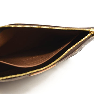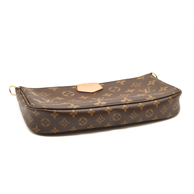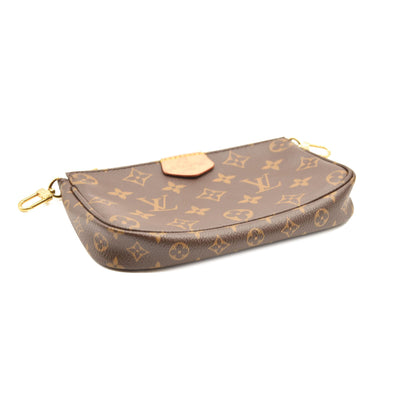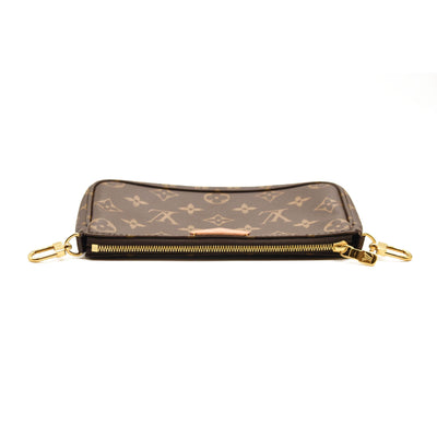 This is an authentic LOUIS VUITTON Monogram Multi Pochette Accessories in Rose Clair. This hybrid cross-body bag is crafted in monogram and mini monogram canvas in brown. It features a pochette accessory, and a mini pochette. It has both a removable gold-tone chain and an adjustable Louis Vuitton inscribed Jacquard strap for multiple carrying options. The top zippers open to a brown fabric interior with a patch pocket.