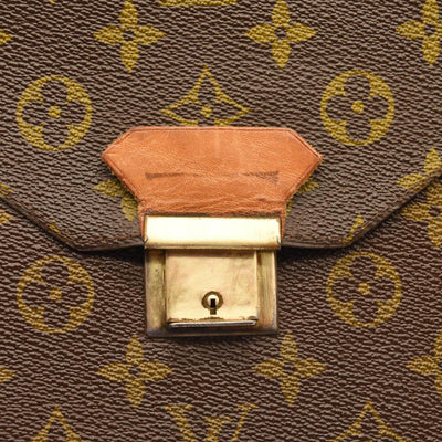 This is an authentic LOUIS VUITTON Vintage Monogram Poche Plate Envelope Clutch PM. This stylish document holder is crafted of Louis Vuitton monogram on toile canvas. The item features a lock closure in brass hardware. This opens to smooth light brown leather interior. This is an excellent clutch, ideal for business or pleasure, from Louis Vuitton!