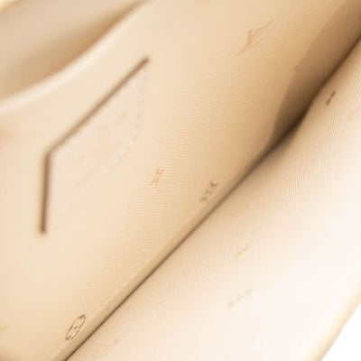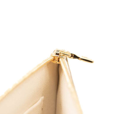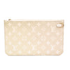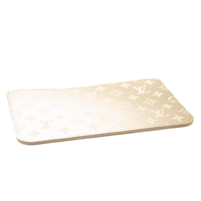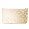 This is an authentic LOUIS VUITTON Monogram Spring In The City Neverfull MM GM Pochette in Sunset Kaki. This chic pochette is crafted of Louis Vuitton monogram on coated canvas in a gradient beige to green. This pochette features a removable leather wristlet strap and a polished gold-tone top zipper that opens to a fabric interior with a flat pocket.