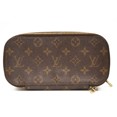 This is an authentic LOUIS VUITTON Monogram Trousse Blush PM. This is a chic, compact and sturdy jewelry case that is finely crafted of Louis Vuitton monogram on toile canvas. The case is a distinctive oval and features two sides both with a brass wrap around zipper that open to an ivory leather interior organized to hold your valuables. Enjoy this case for the right accent of luxury and style from Louis Vuitton!