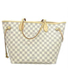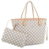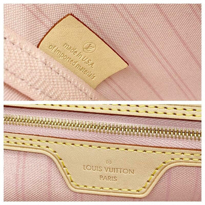 We guarantee this is an authentic LOUIS VUITTON Damier Azur Rose Ballerine Neo Neverfull MM or 100% of your money back. This stylish handbag is crafted of Louis Vuitton signature damier checkered canvas in azur blue and white with a rose ballerine pink interior. This shoulder bag features vachetta cowhide leather trim including strap handles and side cinch cords with polished brass hardware. The top is wide and opens to an rose ballerine pink striped fabric interior with a hanging zipper pocket and a matching pochette. This is a fabulous tote for daily events with the luxury and style of Louis Vuitton!