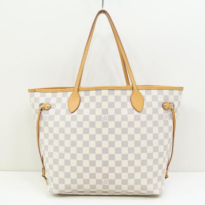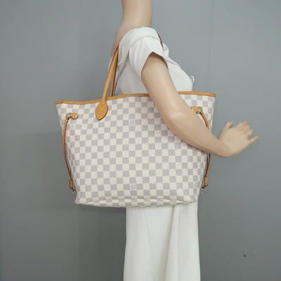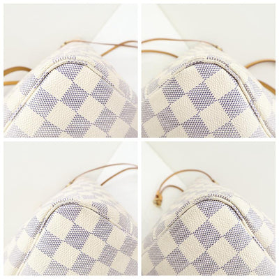 100% Authentic Louis Vuitton Neverfull Mm W/P White Damier Azur Canvas Shoulder Bag