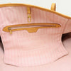 Louis Vuitton Neverfull Mm W/P White Damier Azur Canvas Shoulder Bag with brass hardware, tan vachetta leather trim, dual flat shoulder straps, pink canvas lining, single zip pocket at interior wall and lobster-claw clasp closure at top.