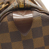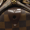 We guarantee this is an authentic LOUIS VUITTON Damier Ebene Speedy 25 or 100% of your money back. This handbag classic is crafted of signature Louis Vuitton Damier canvas in dark brown. The handbag features dark brown rolled leather top handles. The top zipper opens to a red fabric interior with a hanging patch pocket.