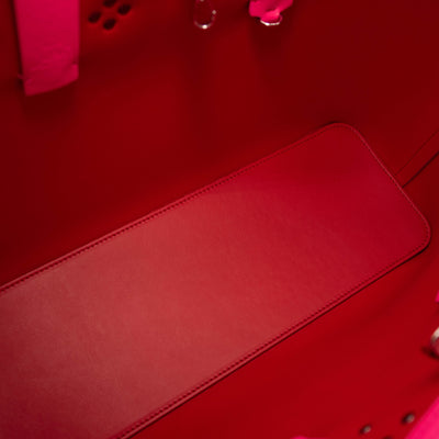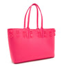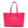 Signature mixed-metal studs shine around the topline of a calfskin-leather tote reinforced with a logoed rubber base that also protects the bag from scratches. A tethered zip pouch is handy for keeping smaller items organized and easy to locate.