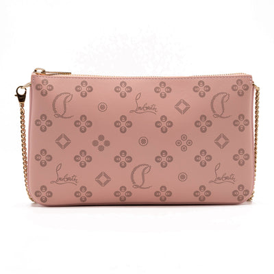 This Italian calfskin-leather bag offers a modern take on logomania with laser-cut perforations of Loubinthesky embellishments and monogram logos. A chain shoulder strap can be detached for handheld carry, and Louboutin's iconic red hue flashes every time you open the pouch.
