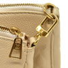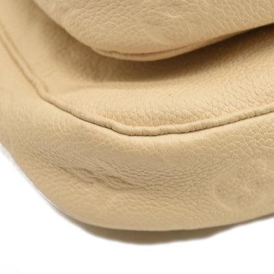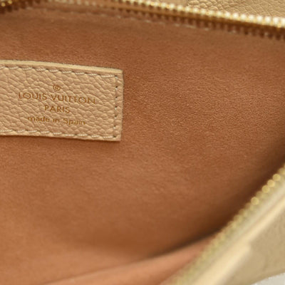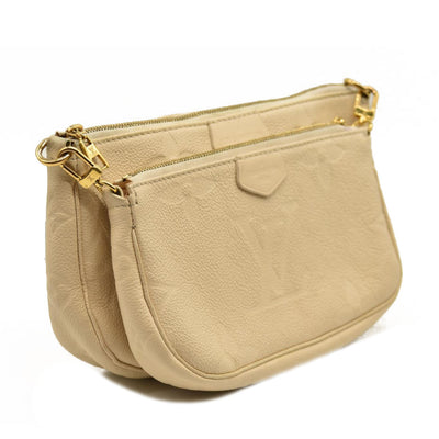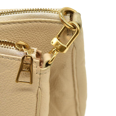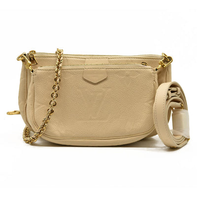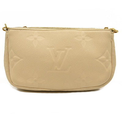 This is an authentic LOUIS VUITTON Empreinte Monogram Giant Multi Pochette Accessories in Cream. This stylish shoulder bag is finely crafted of classic monogram Empreinte leather in ivory. The handbag features a leather shoulder strap, a leather and chain-link strap, and polished brass hardware. The top zipper opens to a beige microfiber interior.