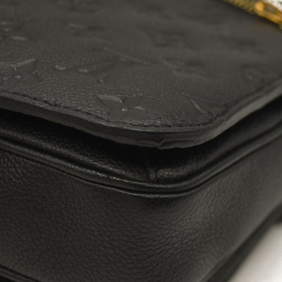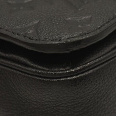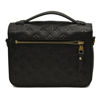 This is an authentic LOUIS VUITTON Empreinte Pochette Metis in Noir Black. This stylish shoulder bag is finely crafted of classic monogram empreinte leather in black. The bag features a short handle, a long leather shoulder strap and polished brass hardware. The front has a brass press lock that opens to a gray striped fabric interior that is ideal for day or evening with the luxury and style, from Louis Vuitton!