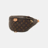This is an authentic LOUIS VUITTON Monogram Bumbag. This stylish waist bag is created out of traditional Louis Vuitton monogram on toile canvas. The bag features a vachetta cowhide leather top handle, an adjustable waist strap and a front and rear zipper pocket. The zippers opens to a spacious black fabric interior. This is an excellent waist bag that is chic and practical from Louis Vuitton!