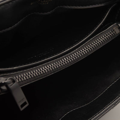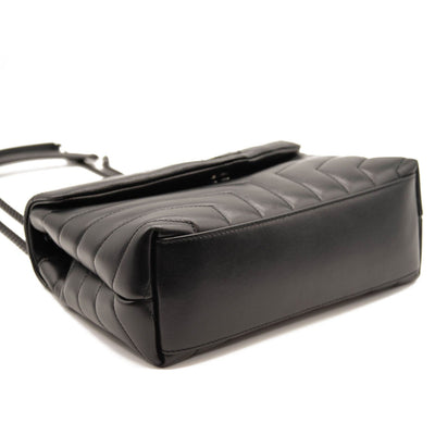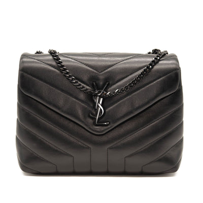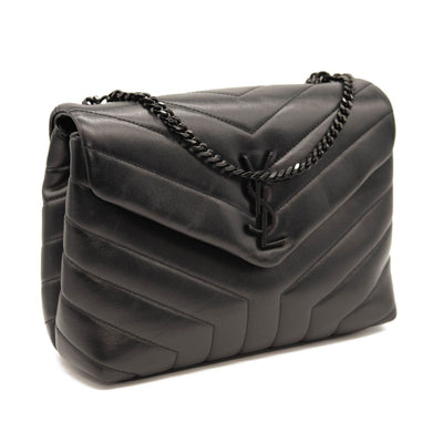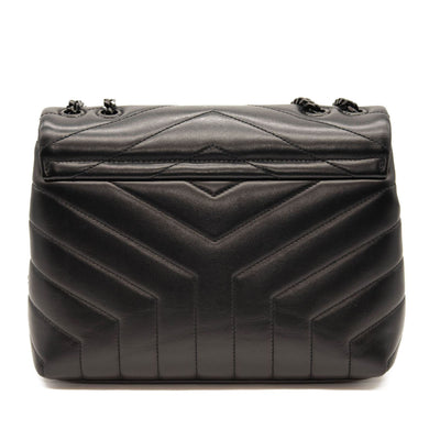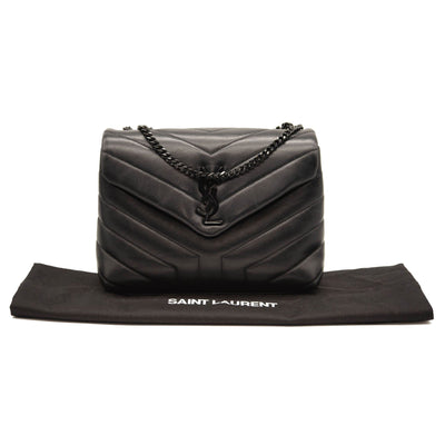NEW SAINT LAURENT Calfskin Y Quilted Monogram Monochrome Small Loulou Chain Satchel Black