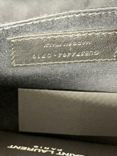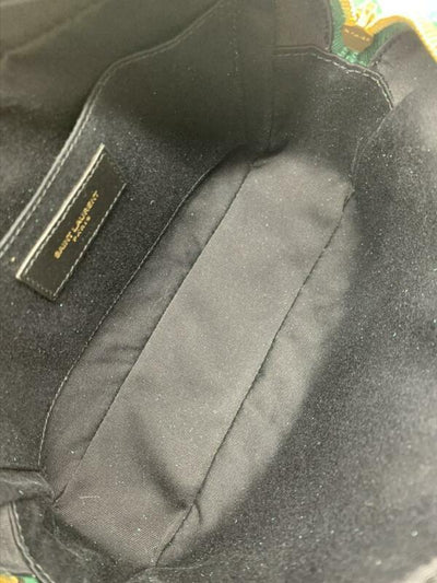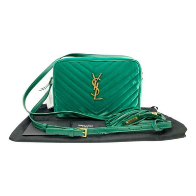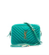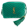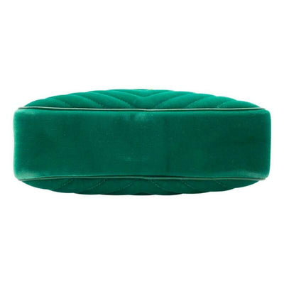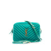 Saint Laurent crossbody bag in chevron-quilted velvet with leather trim.