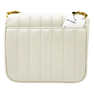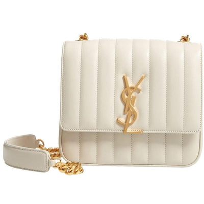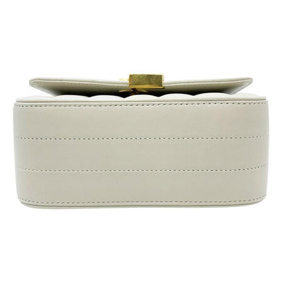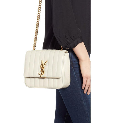 Vertical channel quilting highlights the boxy structure of a lambskin-leather crossbody polished with a gleaming logo insignia and pull-through chain strap.