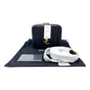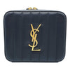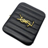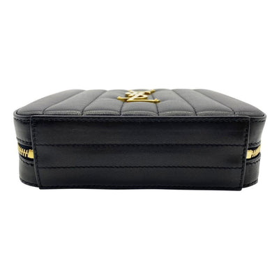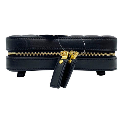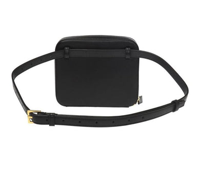 A gleaming logo insignia and vertical channel quilting amplify the luxe aesthetic of a glossy leather belt bag that's keyed to the street scene.